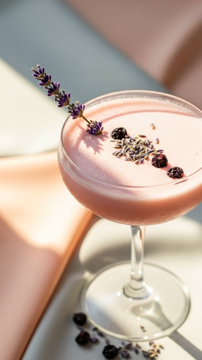 If you enjoy floral cocktails, this adds a fragrant layer. The color is a soft, romantic pink.