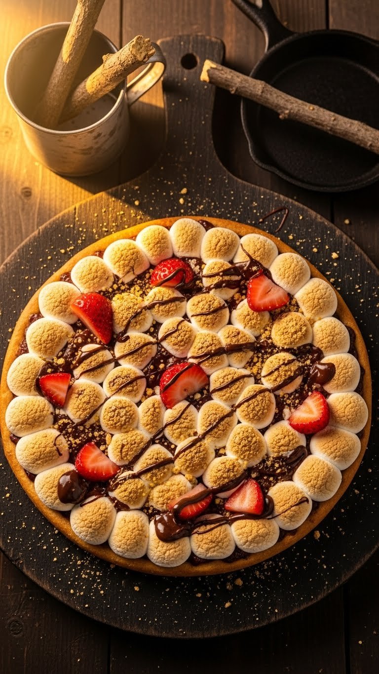 It’s gooey, crunchy, and bright all at once. Great for bonfire nights, kids’ parties, or a playful date-night dessert. You’ll get toasted marshmallow aroma and melted chocolate with zesty strawberry bursts.