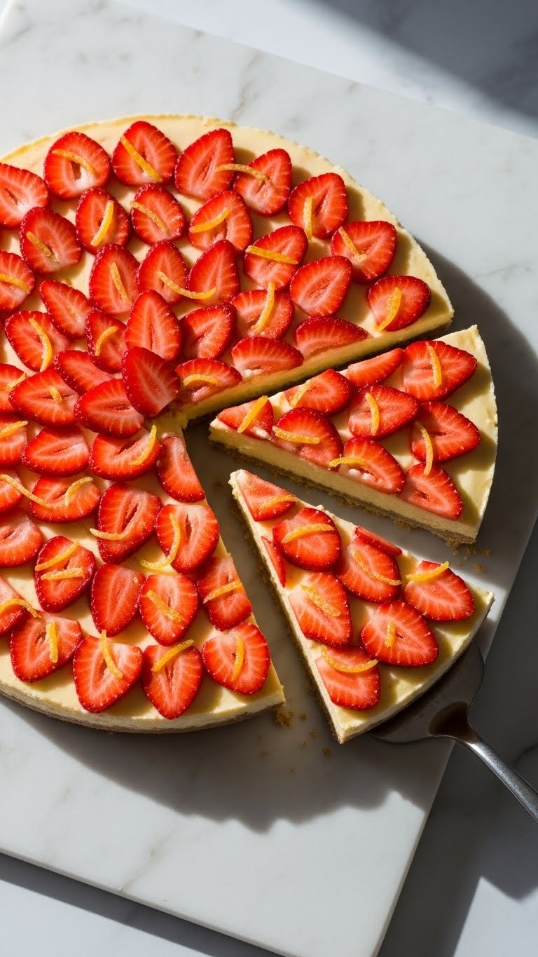 This recipe feels elegant for dinner parties and spring gatherings. The lemon lifts the strawberries, and the creamy texture makes each bite feel decadent but balanced. You’ll catch a citrus perfume as you slice.