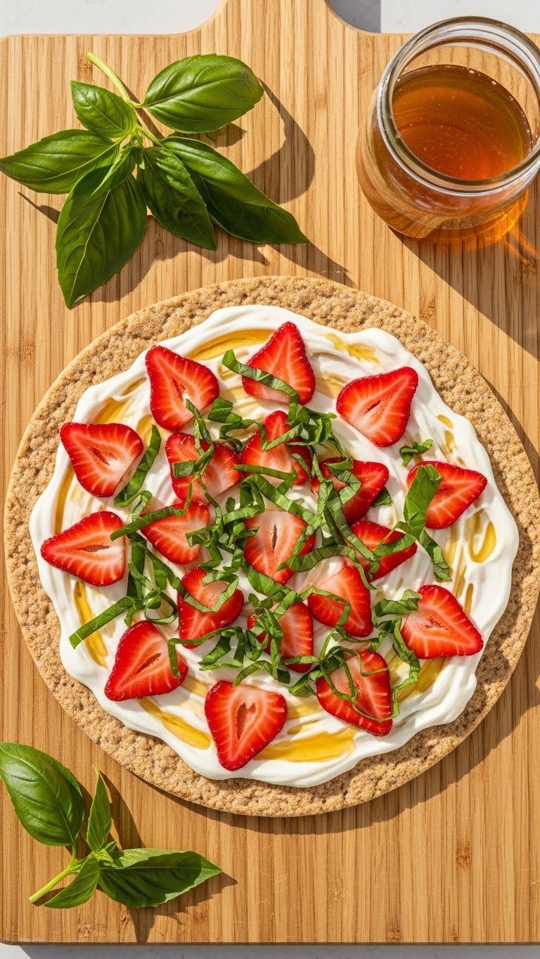 8. Strawberry and Basil Honey Yogurt Dessert Pizza