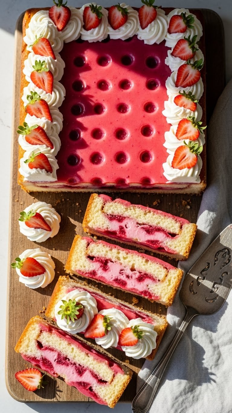 4. Strawberry Lemon Poke Cake (Bright & Fresh)