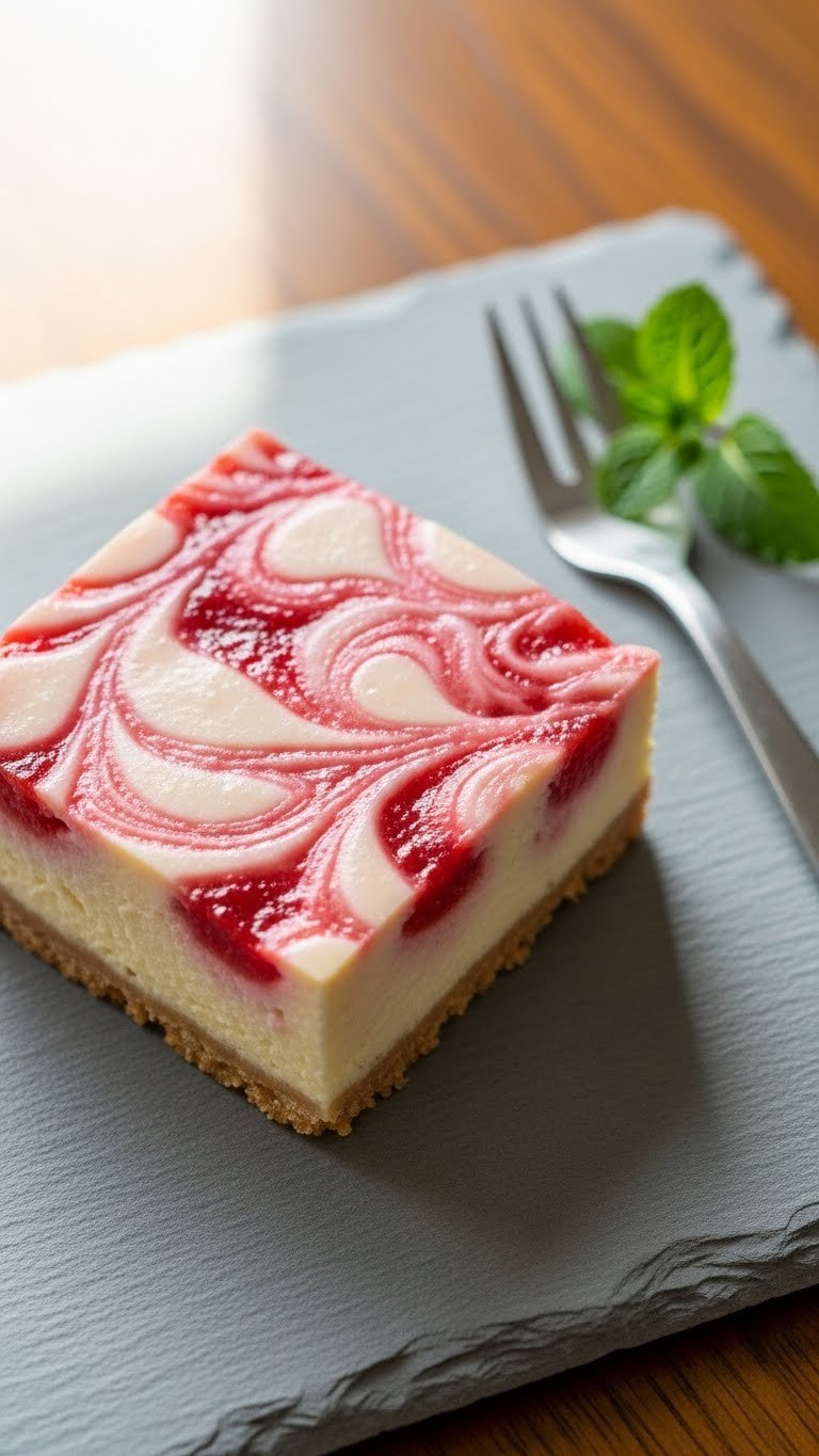 Slice and serve chilled on pastel plates. Add a drizzle of extra puree and a mint leaf. Pair with herbal tea or champagne. Store in fridge up to 3 days. For make-ahead, puree and spread the night before; add whipped cream just before serving.