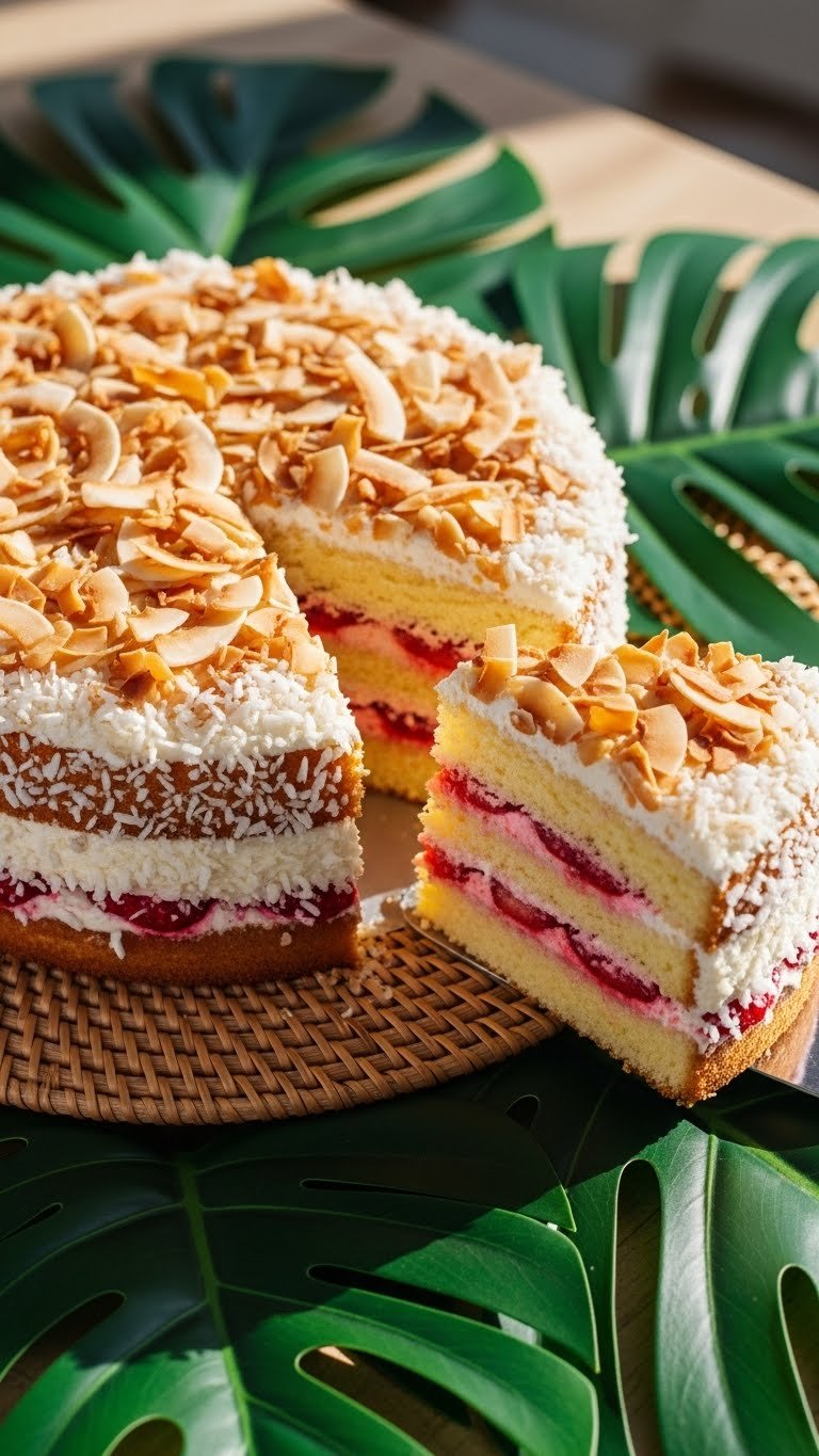 8. Strawberry Coconut Poke Cake with Toasted Coconut
