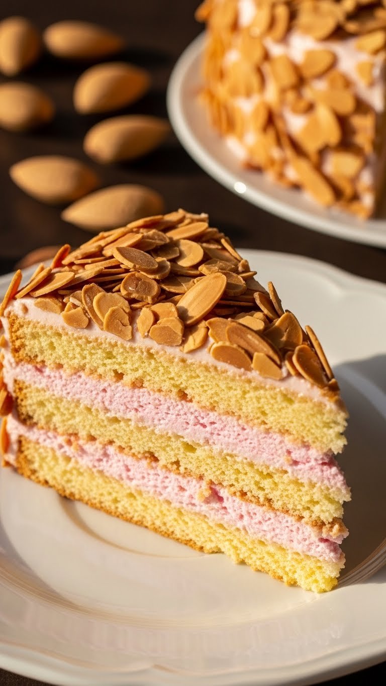 - Toast sliced almonds in 350°F oven 5–7 minutes until golden.