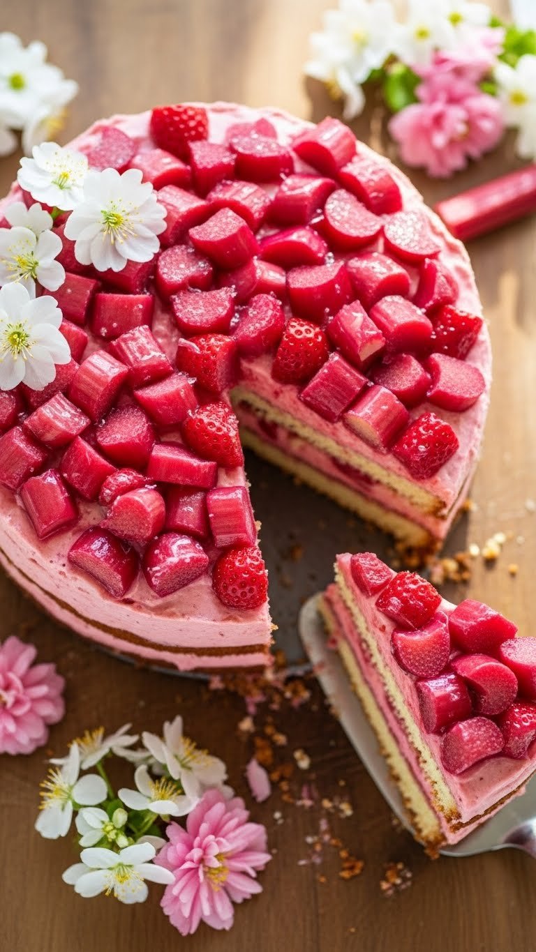 This strawberry rhubarb poke cake pairs sweet strawberries with tangy rhubarb for a lively contrast. Rhubarb adds a bright, slightly tart note that balances sweet condensed milk and gelatin. The texture includes jammy fruit pockets amid a buttery crumb. It's ideal for spring and Mother's Day gatherings.