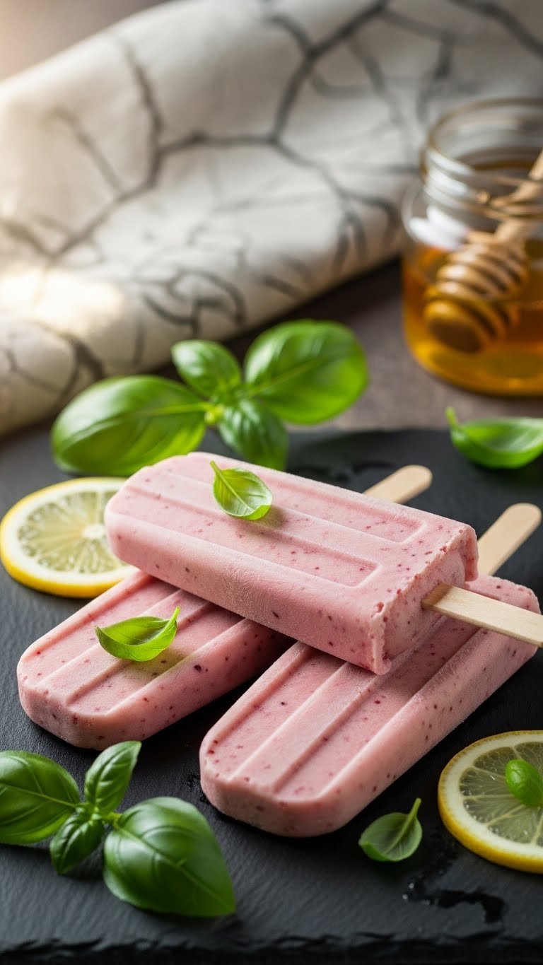 6. Strawberry Lemon Basil Pops — Bright & Herbal