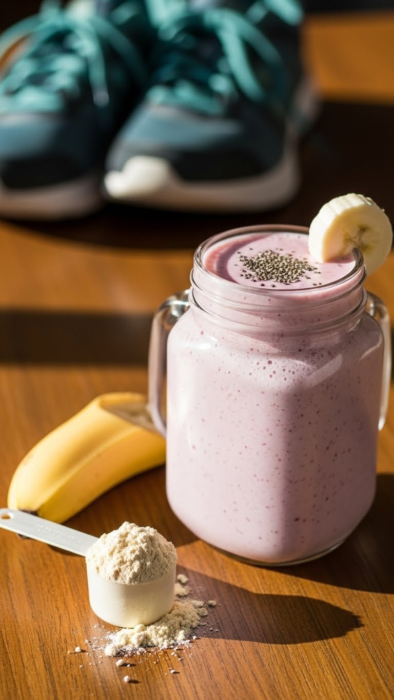 This filling smoothie mixes ripe banana, whey protein, and strawberries for lasting energy. The banana adds natural sweetness and silkiness. It’s a great pre- or post-workout choice when you need protein and carbs. Fans of banana-strawberry combos will love the thick, creamy mouthfeel.
