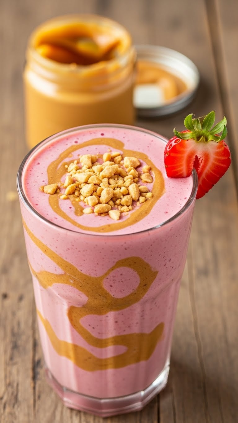 This one combines strawberry sweetness with the savory comfort of peanut butter. It’s creamy, slightly nutty, and filling thanks to healthy fats. Great as a mid-morning snack or post-workout recovery when you want both protein and flavor. You’ll taste roasted peanut notes balanced by bright fruit.