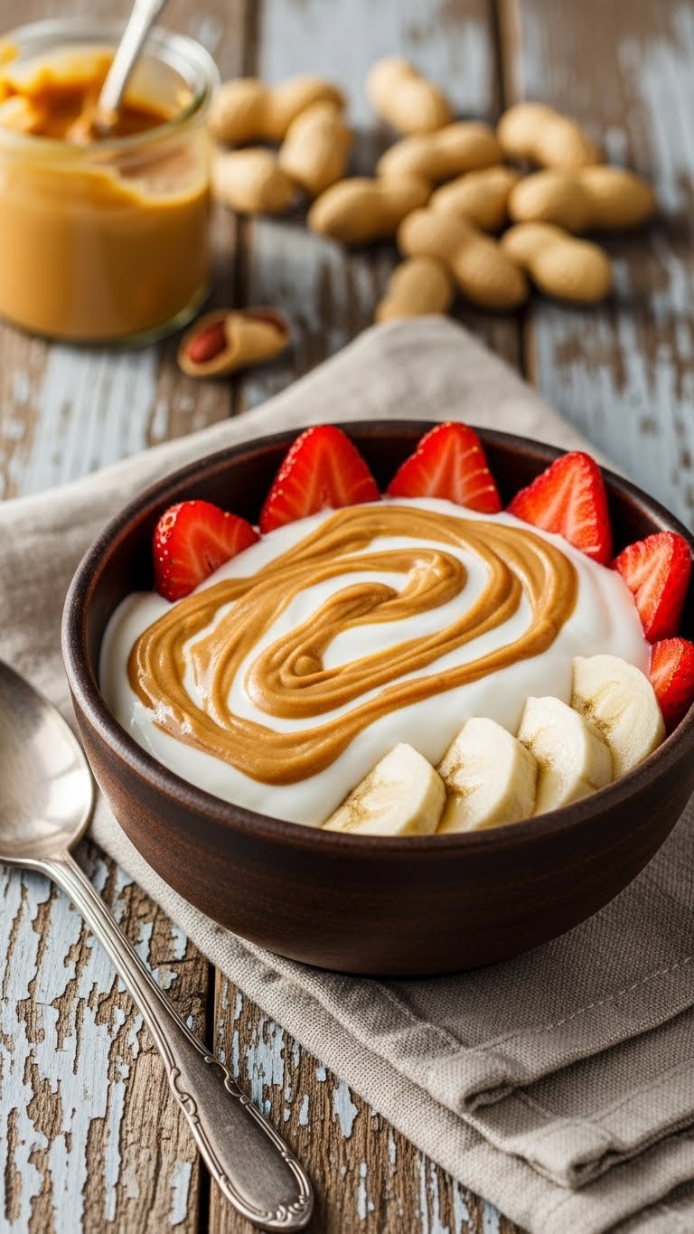 2. Strawberry Banana Peanut Butter Yogurt Bowl