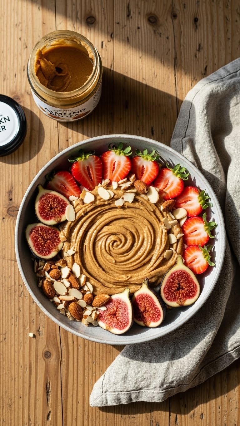 This bowl mixes nutty almond butter, sweet figs, and bright strawberries. The figs add honeyed flavor and soft texture. Almond butter brings richness and makes the bowl more filling. It’s perfect for weekend brunch or a post-workout meal. Expect a complex mix of textures and a lightly sweet aroma.