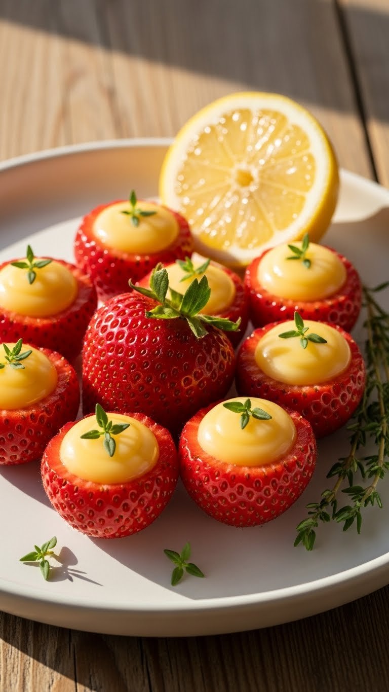 2. Lemon Curd & Thyme Stuffed Strawberry (Bright and Herbal)