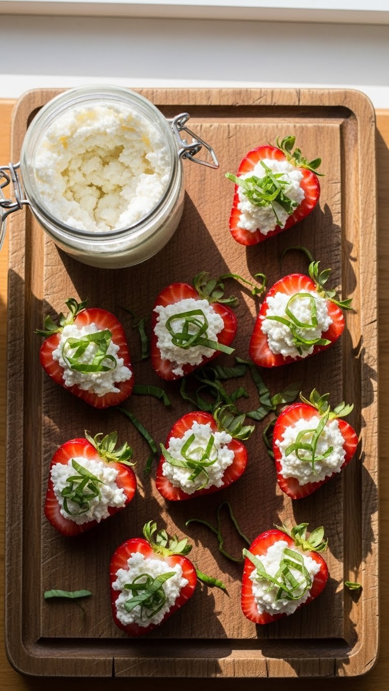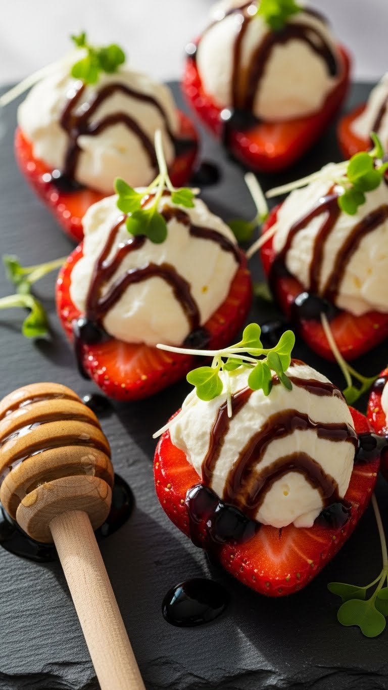 4. Balsamic Mascarpone Stuffed Strawberry (Savory-Sweet Elegance)