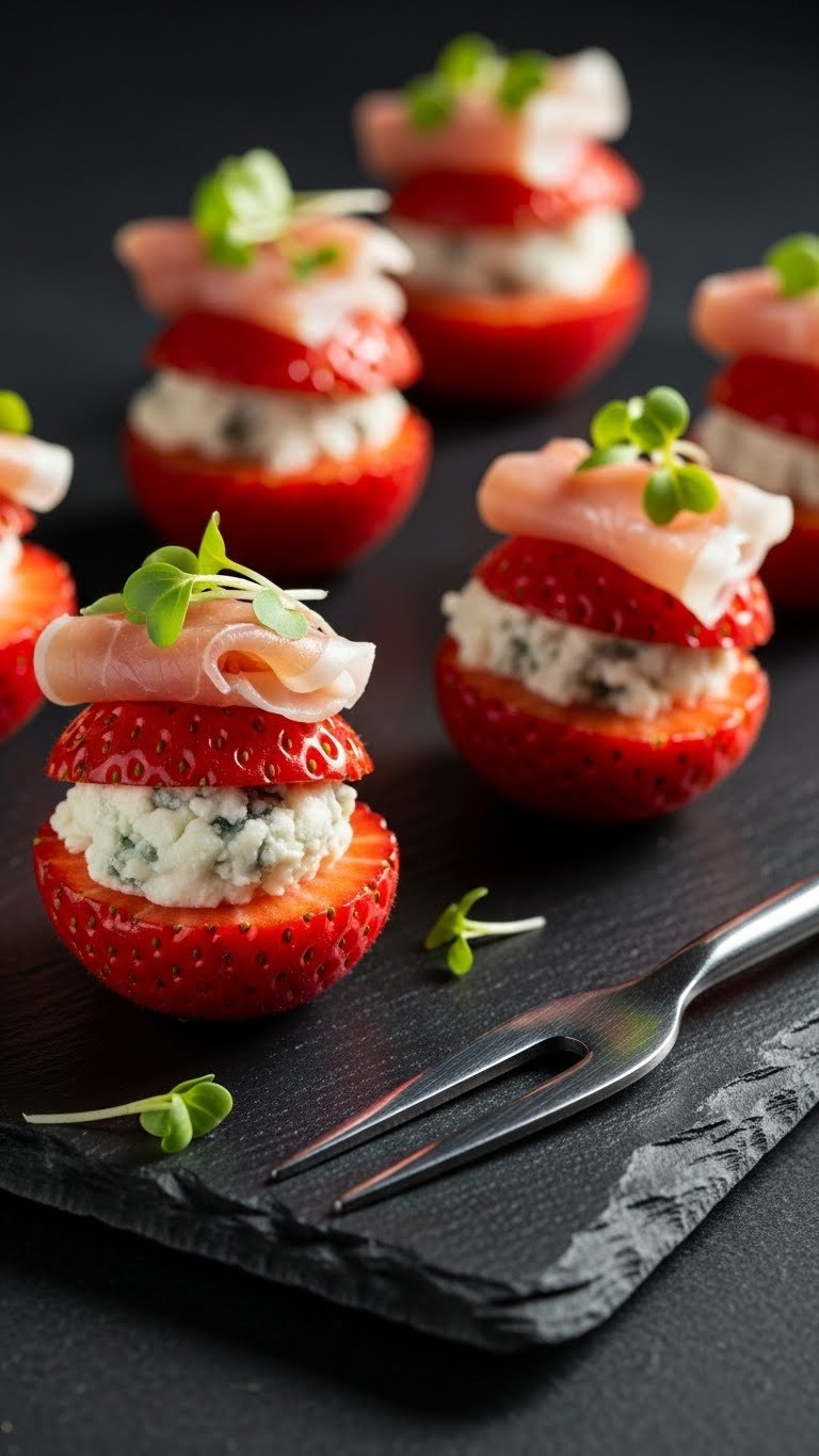 9. Blue Cheese & Prosciutto Stuffed Strawberry (Bold and Savory)