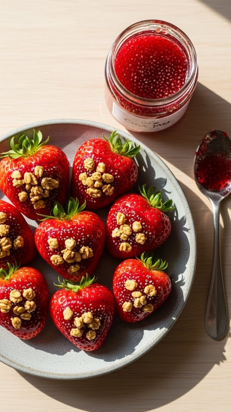10. Chia Strawberry Jam & Granola Stuffed Strawberry (Breakfast Bite)