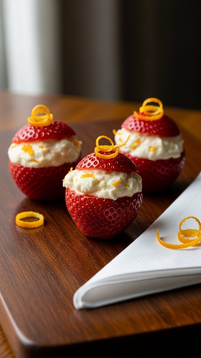 12. Rum-Spiked Mascarpone & Orange Zest Stuffed Strawberry (Boozy Dessert Bite)