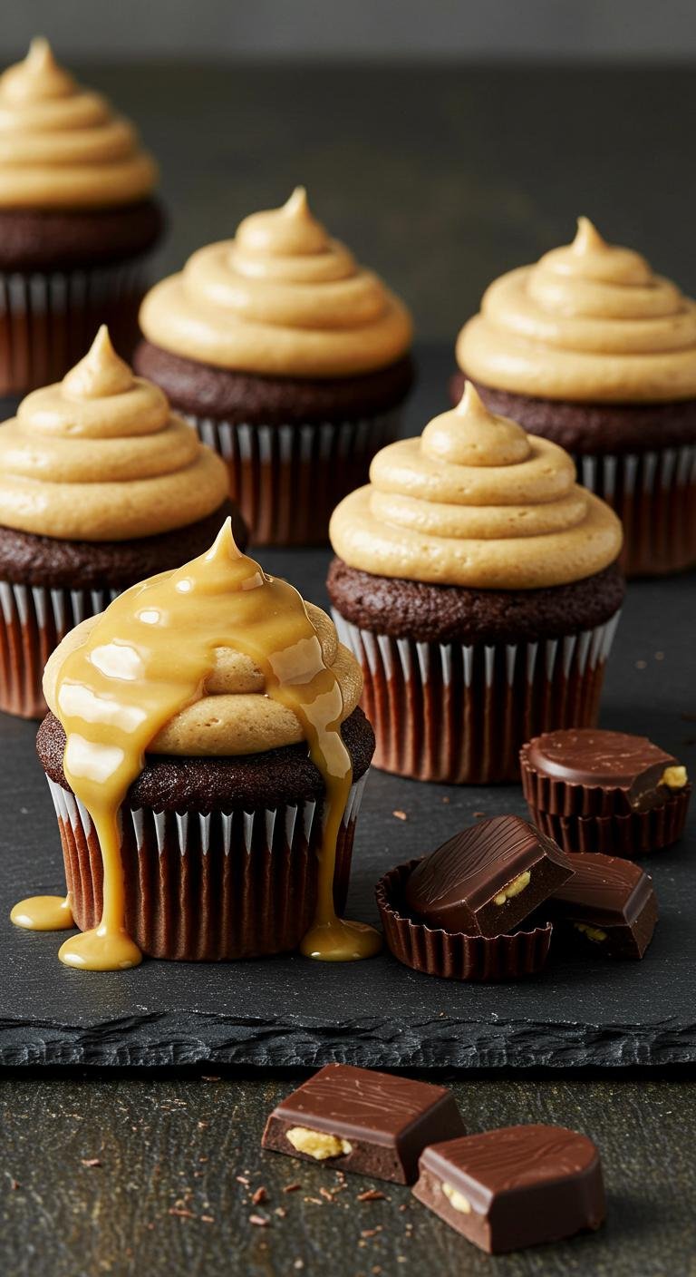 - Once cooled, frost with peanut butter icing and add chopped cups.