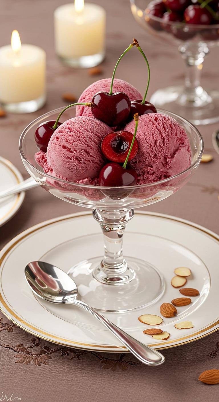 - Mix amaretto into the cherry ice cream until evenly incorporated.