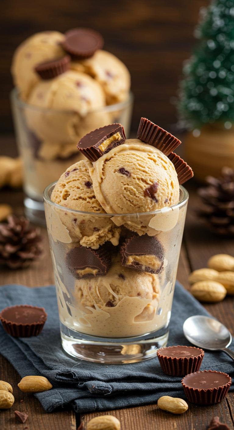 - Top with chopped peanut butter cups and drizzle with chocolate syrup.
