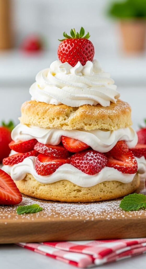 - Alternate layers of strawberries, cake, and whipped cream in a glass.